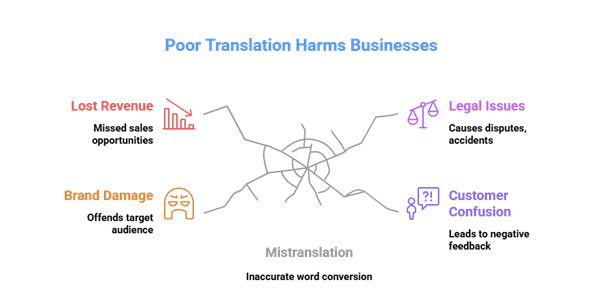 The effects of mistranslation go far beyond spelling errors. Businesses that neglect translation quality often face serious consequences such as: